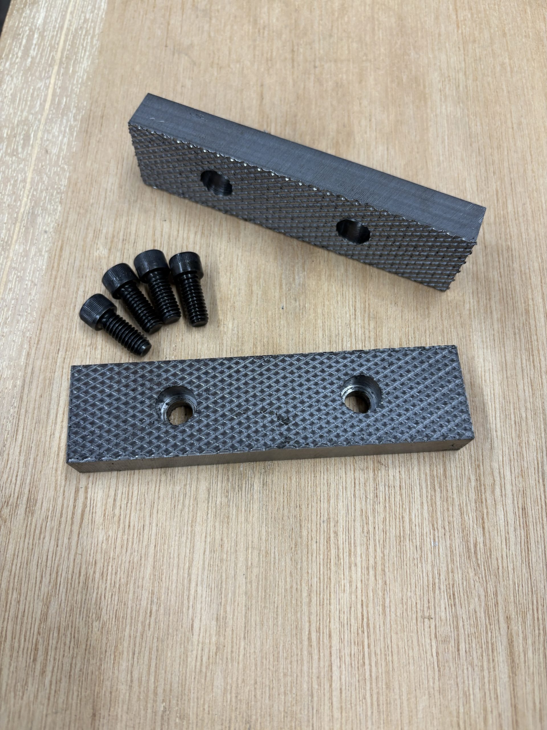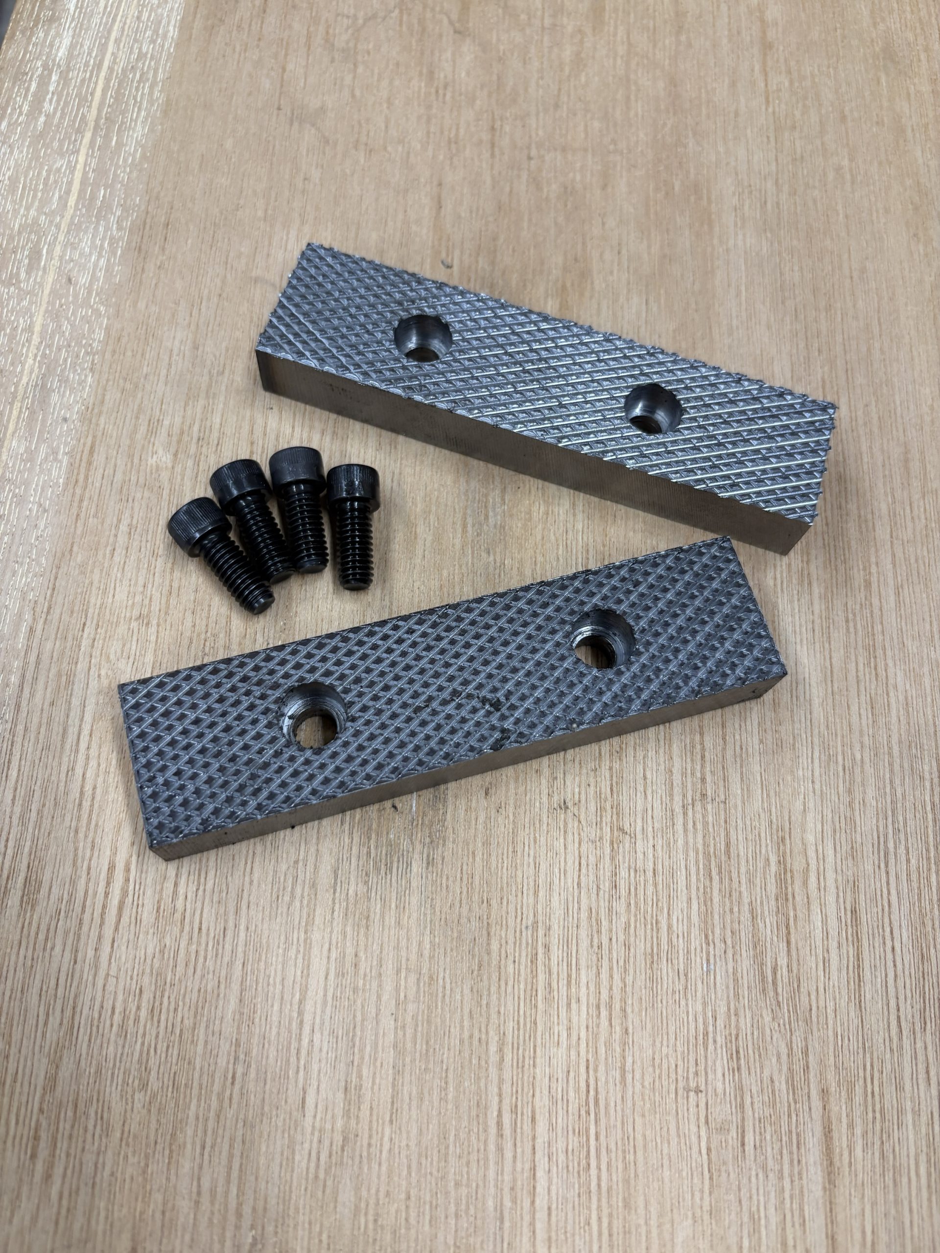 Wilton replacement jaw inserts, will fit #500 and C2 vises. These jaws are 5″ Long by 1-1/4″ tall. Four 5/16 screws included. These jaws will fit Wilton #500 and C2 manufactured after 1975 that have the larger anvil. These jaws are hardened to Rockwell 55 to ensure durability, and many years of use. (Be sure to double check you are looking for replacement jaw inserts with these dimensions, older Wiltons 9500 & C2 vises, pre 1975 era, require jaws with a lower profile than these.)