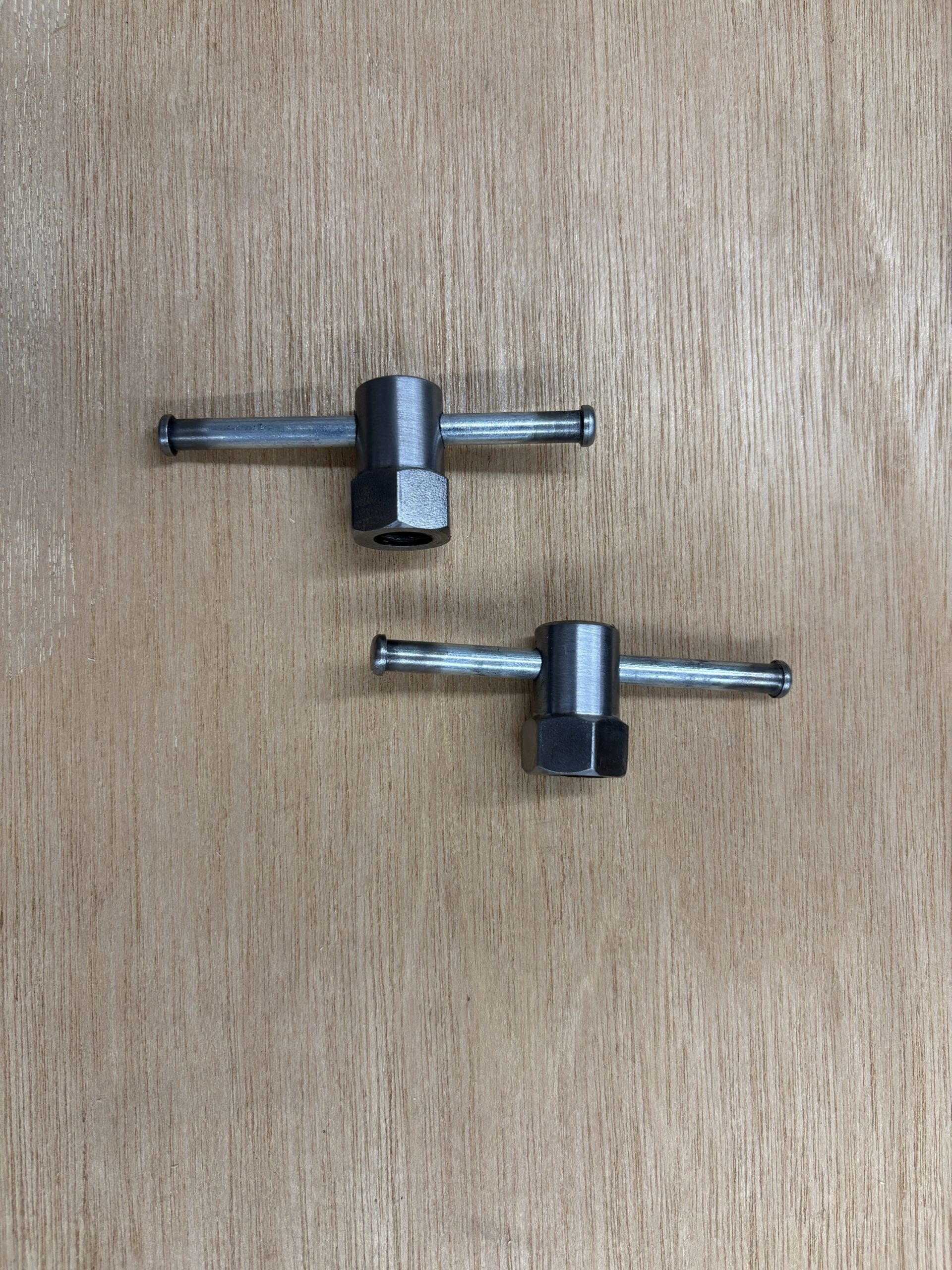 Set of two Swivel base handles with 1/2-13 thread and 3/4” diameter hex. These are designed and tested to fit the early Wilton bench vises.